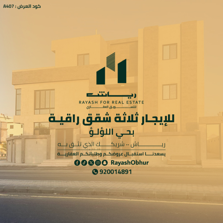 للإيجار ثلاثة شقق بتشطيبات عالية الجودة