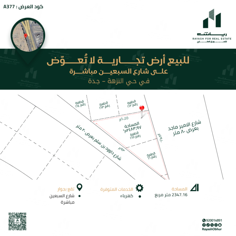 ▪ الغرب: 93 متر، يحدها شارع بعرض 20 متر