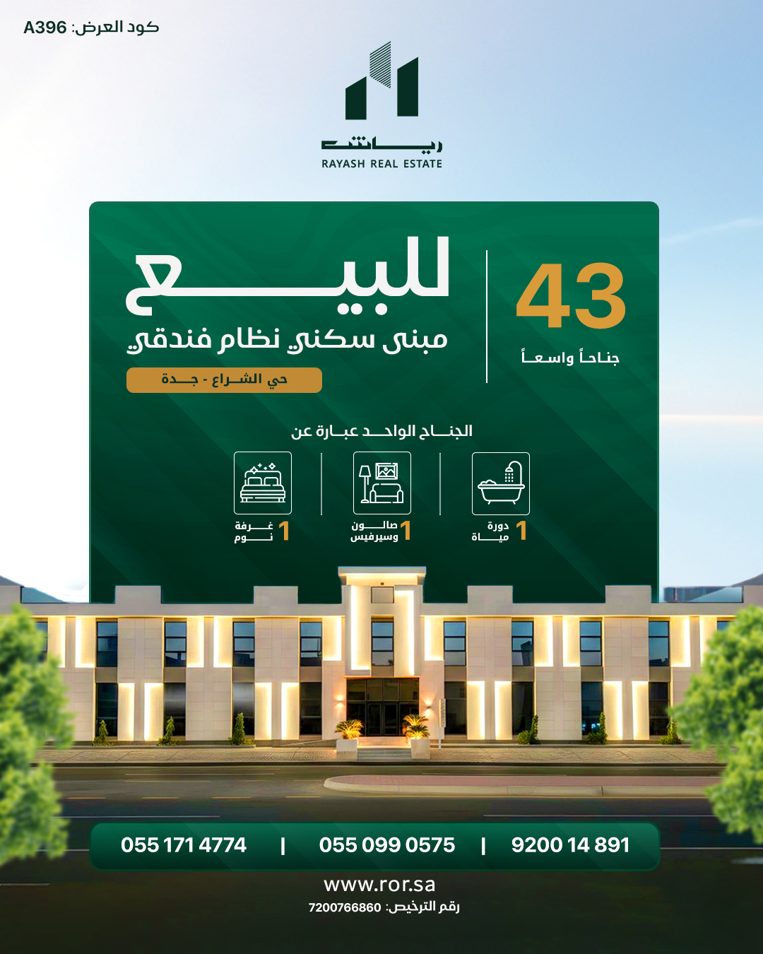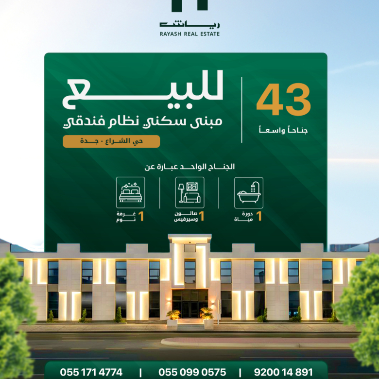 ▪ مبنى سكني بنظام فندقي قابل للتشغيل كشقق مخدومة