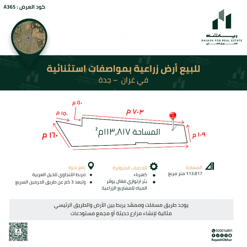 أرض زراعية بمواصفات استثنائية في غران – جدة 113,817 م²